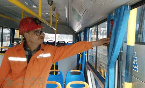 劉興華仔細例檢客運車輛  劉興華檢查車載安全錘
