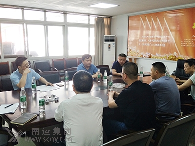 省運管局副局長張洪(左二)聽取儀隴分公司經理林勁松關于汛期安全生產工作落實情況的匯報。