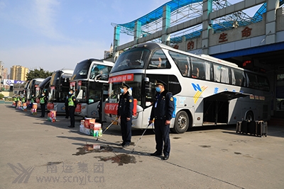 出發前,運管人員協助配合站務工作人員對“春風行動”專車進行再次消毒。