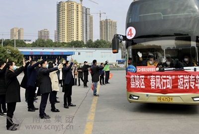 2月19日上午,在南運集團南充汽車客運站舉行了“春風行動”返崗專車集中發車儀式。四川省疫情防控應急指揮部調研督查組組長、省政府督查室副主任周莉一行在市委常委、市政府常務副市長伍定,嘉陵區委副書記、區長史燚,市交通運輸局黨委委員、副局長張世民,嘉陵區副區長申慶超、嘉陵區交通運輸局局長青海兵和南運集團董事長、總經理、黨委書記王希平的陪同下,現場督查了“春風行動”返崗專車疫情防控工作,并為農民工返崗送行。嘉陵區委常委、常務副區長楊方軍主持發車儀式。 此次集中發車是新冠肺炎疫情發生后,南運集團南充汽車客運站組織集中發出的第二批“春風行動”返崗專車。現場7輛“黨員先鋒號”“春風行動”返崗專車在嘉陵區運管部門的組織下采取編組編號,組成返崗車隊,一字排開,整裝待發,統一運送190余名農民工前往廣東省東莞、深圳、潮州、潮陽、中山、珠海等地。 每一輛專車都嚴格落實疫情防控和安全運輸各項要求,按照“一車一策”制定運行方案,實行“點到點、門到門、一站式”直達運輸服務,將身體健康、體溫檢測合格的農民工安全運送返崗。發車現場,周莉一行為返崗農民工們送上了方便食品、飲料、防疫物資等慰問品,使每一位返崗農民工享受溫馨服務。 周莉表示,從車站組織農民工返崗集中發車情況看,南充汽車客運站嚴格疫情防控措施,返崗農民工乘車手續齊全,對“春風行動”部暑安排周密,組織有力有序,工作成效明顯,切實做到了出發有組織、健康有監測、運輸有保障、運達有交接、全程可追溯,值得充分肯定。 周莉要求,南充汽車客運站在堅決做好疫情防控工作的同時,要積極采取多種有效措施,進一步抓好“春風行動”農民工集中返崗運輸疫情防控管理,全力保障農民工集中返崗復工安全、有序、及時、順暢。 (李志忠 李曉光)