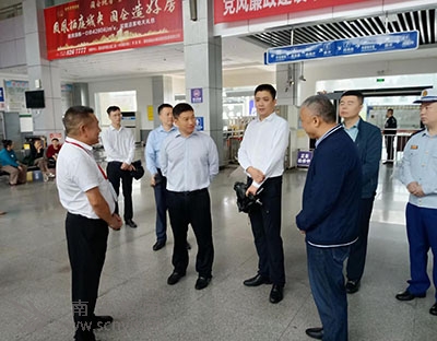 蓬安縣委副書記、縣長邱躍峰(左二)在蓬安汽車客運站檢查中秋國慶安全生產工作