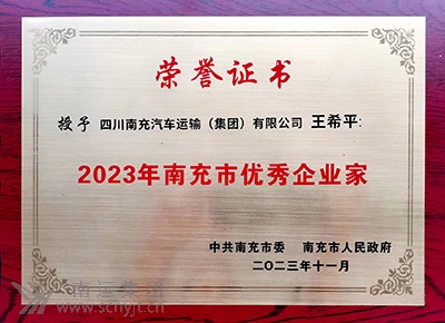 南運集團黨委書記、董事長、總經理王希平 榮獲“2023年南充市優秀企業家”稱號