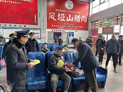 南充市交通運輸局一級調研員張世民向旅客贈送春運禮包
