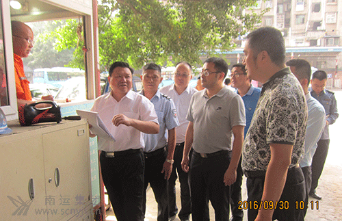 高坪區(qū)委書(shū)記韓倫紅(左五)檢查高坪汽車(chē)站安全  高坪區(qū)委書(shū)記韓倫紅(左二)在高坪汽車(chē)站安全例檢處檢查