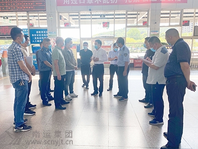 市交通運輸局黨委書記、局長楊積義(右六)檢查南充汽車客運站安全及防疫工作。