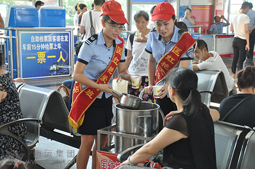盛夏時(shí)節(jié),恰值每年暑運(yùn)高峰,在南充汽車客運(yùn)站內(nèi),數(shù)千旅客川流不息,奔波于各自的行程中。為做好旅客乘候車過(guò)程中站務(wù)服務(wù)工作,南充汽車客運(yùn)站組織“匡紅艷愛(ài)心班”自愿者服務(wù)隊(duì)員,利用業(yè)余時(shí)間熬煮綠豆南瓜湯,堅(jiān)持每天送到候車大廳、售票大廳,送到每一位需要的旅客手中。她們用愛(ài)心為候車的旅客送上了一絲絲清涼,一些旅客見(jiàn)此情景深受感動(dòng),一位趕乘蓬溪班車的旅客在連續(xù)喝了三杯后感慨地說(shuō)到“沒(méi)想到你們做得這么好,在其他地方我真還沒(méi)有見(jiàn)到過(guò)”。并問(wèn)道“你們是每天都送綠豆湯嗎”?愛(ài)心班的姐妹們回答到:“在夏日伏天中我們每天都要給旅客送到現(xiàn)場(chǎng),歡迎你下次來(lái)站飲用”。這位旅客連聲稱贊地說(shuō)“謝謝你們,有時(shí)間我一定在網(wǎng)上宣傳你們”。“不用,只要你們滿意就是對(duì)我們最好的肯定”。為旅客在候車的時(shí)候解除暑熱,帶來(lái)涼意,是愛(ài)心班姐妹們的心愿。當(dāng)志愿者們看到旅客喝著綠豆湯,倦意漸消的情景,她們倍感欣慰。她們知道在這“火熱”的盛夏里,送綠豆湯的小小舉動(dòng),溫暖了旅客們的心。 (張蜀慧 王洪)