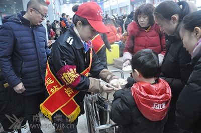2019年2月10日,是農歷已亥年的正月初六。由于春節(jié)假期即將結束,大量鄉(xiāng)親踏上了返崗的旅途。南充汽車客運站候車大廳內人頭攢動,熙熙攘攘。上午9:00時左右,正是客流高峰,只見兩名身穿客運站工作制服、肩披“南充汽車客運站匡紅艷愛心班”綬帶,頭戴小紅帽的年輕站務員,推著手推車。她們就是車站“匡紅艷愛心班”第二屆班長胡燕和成員李莉,一邊慢慢行走,一邊說道:“各位旅客大家好,今天是大年初六,你們就要離開家鄉(xiāng)遠行了。我們南充汽車客運站專門為大家準備了水餃,給大家餞行,有需要的請告訴我們。” 一對旅客夫婦主動詢問道:“好多錢一碗?”胡燕說:“不要錢,是我們車站免費給大家提供的。”“你們車站還這么好哇,那給我們來兩碗嘛,我們從鄉(xiāng)下來,還真的沒吃早飯。”胡燕和李莉將兩碗水餃熱情地送到了這對旅客夫婦手中。旅客夫婦說:“謝謝你們,沒想到在車站又嘗到了年味。” 見此情景,一些旅客陸續(xù)聚攏到推車跟前,“阿姨!我要吃餃子。”一名小朋友走近推車喊道。“要得,阿姨給你舀。”胡燕和李莉拿出飯盒筷子,舀好一碗又一碗,送到需要的旅客手中。 “大哥,你到哪里去?”胡燕一邊忙著端水餃,一邊問一位前來的旅客。“我到貴陽,明天就要上班了,路程長,今天我想可能要餓肚子,沒想到你們還準備了水餃,你們車站真好,給我留下了今年春節(jié)家鄉(xiāng)的美好印象,謝謝你們!”“不用謝,這是我們應該做的。我們車站每年初六都要為大家煮水餃,給大家提供方便,祝你旅途愉快。”胡燕回答道。“你們想得周到,謝謝你們!”旅客吃著熱騰騰的水餃連聲說道。 整整一個上午,胡燕和李莉送了一車又一車,直至將40斤水餃全部送完。她們看見旅客舒心地坐在候車大廳里,滋滋有味地吃著水餃,十分愉快開心。 春節(jié)期間,南充汽車客運站深入開展“情滿旅途”活動,全力做好農民工返鄉(xiāng)返崗關愛服務工作,熱心為旅客送開水、做好事、猜謎語、搞游園等。其中,大年初一送湯圓和大年初六送水餃,是一直堅持開展的兩項愛心志愿服務活動,自2010年春運開始,連續(xù)九年堅持不懈,受到了廣大旅客及社會各界的廣泛好評。一些旅客紛紛拍照留影,在網絡媒體上自發(fā)傳播,產生了良好的社會影響。 (李曉光)