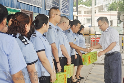 連日來,我市持續(xù)高溫天氣“高燒不退”,廣大員工每天奮戰(zhàn)在運(yùn)輸生產(chǎn)一線非常辛苦。8月28日下午,市總工會(huì)黨組書記、常務(wù)副主席官曉林等一行在集團(tuán)公司黨委副書記、工會(huì)主席胡仕杰陪同下,深入南充汽車客運(yùn)站,看望慰問高溫酷暑下堅(jiān)守崗位的一線員工。 官曉林一行為堅(jiān)守崗位的一線員工,送上了藿香正氣液、毛巾、香皂及清涼飲料等防暑降溫物品。一句句“你們辛苦了,謝謝大家!”充分表達(dá)了市總工會(huì)領(lǐng)導(dǎo)對(duì)員工們?cè)诟邷叵聢?jiān)守崗位的深情厚愛。同時(shí)叮囑大家要做到勞逸結(jié)合,注意防暑降溫,保護(hù)身體健康。他說:“道路旅客運(yùn)輸工作很辛苦、很光榮,非常重要。大家用辛勤的汗水換來了市民出行的便捷。希望大家要始終堅(jiān)持安全第一,旅客第一,服務(wù)第一,進(jìn)一步做好旅客運(yùn)輸組織和服務(wù)保障工作,確保旅客走得安全、走得順利、走得滿意。” 據(jù)悉,市總工會(huì)此次共給南運(yùn)集團(tuán)發(fā)放200份防暑降溫物品及清涼飲料,在炎炎夏日給員工們送來聲聲問候,帶來絲絲涼意,極大地鼓舞了一線員工的士氣,激發(fā)了一線員工的熱情,大家紛紛表示,一定不辜負(fù)上級(jí)領(lǐng)導(dǎo)的關(guān)懷愛護(hù),繼續(xù)發(fā)揚(yáng)戰(zhàn)高溫,斗酷暑的精神,以更高的工作熱情,全力以赴投入客運(yùn)工作之中,為市民安全出行做出新的更大的貢獻(xiàn)。 (王洪)