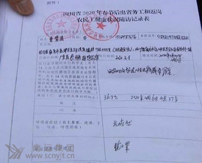 每位乘客的《四川省2020年春節(jié)后出省務(wù)工和返崗農(nóng)民工健康狀況隨訪記錄表》