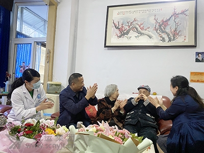 11月5日,市委老干部局副局長李文剛一行,在集團公司黨委副書記、工會主席胡仕杰和紀委書記、監事會主席姚素平的陪同下,代表市委、市政府,向南運集團老紅軍曹守成送上105歲生日祝福,并送去了鮮花和慰問金。為曹老紅軍服務的志愿者、簽約家庭醫生等也悉數到場祝福。 李文剛仔細詢問了曹老紅軍的身體狀況和生活情況,看到老紅軍身體健康,思路清晰,李文剛表示很欣慰,他說,曹老紅軍爬雪山、過草地,參加抗日戰、解放戰爭和社會主義革命建設,是為國家作出卓越貢獻的一代,沒有老一輩革命者的流血犧牲,就沒有我們今天的幸福生活。站在“兩個一百年”的歷史交匯點,我們一定要認真宣傳貫徹黨的十九屆五中全會精神,繼承和發揚偉大的長征精神,走好我們這一代人的新長征之路。李文剛還叮囑醫護人員、志愿者和家屬一定要好好照顧曹老紅軍,確保曹老紅軍安享幸福晚年生活。曹老紅軍的家人對黨組織和南運集團的關心和照顧,表達了由衷的感謝。 “曹爺爺,祝您生日快樂……”伴著聲聲祝福,陣陣掌聲,李文剛帶領現場人員圍坐在曹老紅軍身邊,拍打著溫暖的節拍,唱著動聽的生日歌,“祝您生日快樂!祝您生日快樂!……”一起為曹老紅軍獻上了生日祝福歌,歡快而溫馨的歌聲和祝福聲在曹老紅軍家中響起,每一個人的臉上都洋溢著幸福的笑容。 (黨群辦)