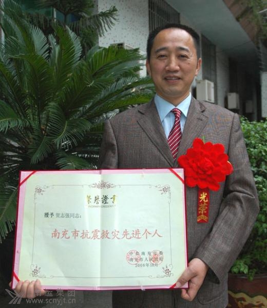 圖為旅游分公司駕駛員賀志強被市委、市政府授予“南充市抗震救災先進個人”稱號